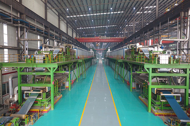 We have established three 150 m/min color-coated high-end automation production lines. In pressure testing of roller, timely adjusted first coat and top coat dual-roller coating head can be designed with dual-coating and dual-drying process. In online thickness testing of primer and finish paint wet film, top coat can be finished by U-type dual-coating head machine. Roller is amounted in online scraper and paint preparation constant temperature system.......