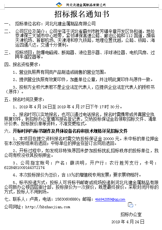 • 招標業(yè)主: 河北兆建金屬制品有限公司