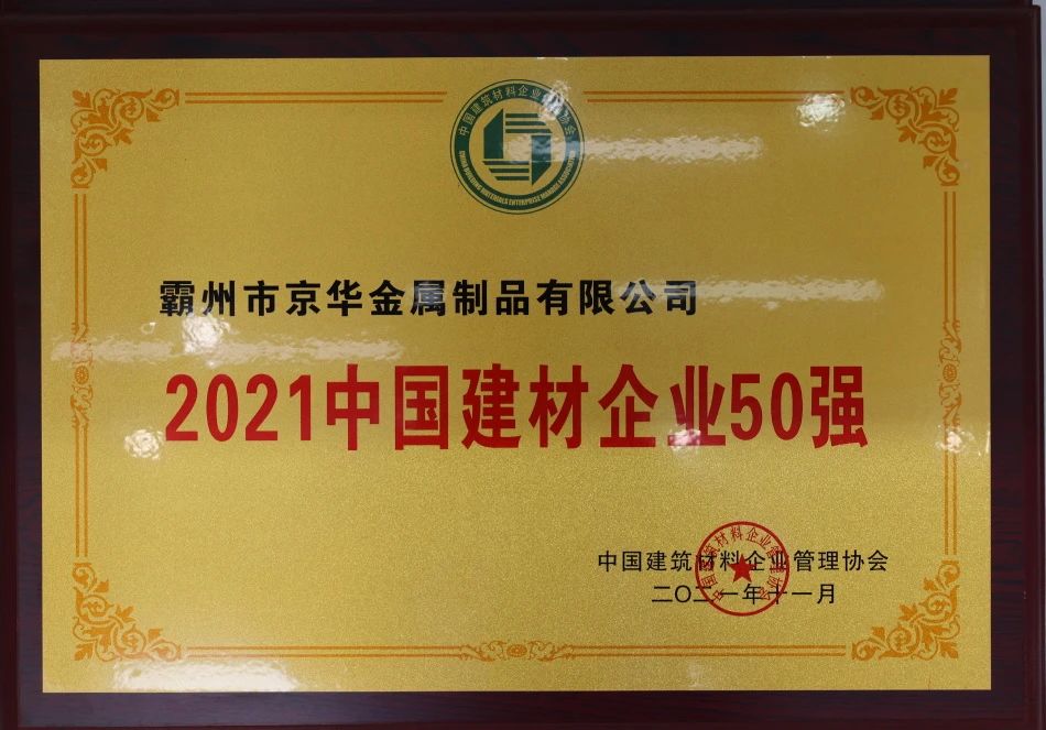 霸州京華金屬制品有限公司作為一家專業(yè)生產(chǎn)冷軋帶鋼、鍍鋅帶鋼、鋅鋁鎂帶鋼、冷軋鋼板、鍍鋁鋅鋼板、彩涂鋼板的現(xiàn)代化民營企業(yè),自創(chuàng)立以來,始終堅持創(chuàng)新,不斷擴大生產(chǎn)規(guī)模,通過了質(zhì)量管理體系ISO9001認證、歐盟CE認證等多項權(quán)威認證,且榮獲了“全國百佳質(zhì)量誠信標(biāo)桿企業(yè)”、“中國建材企業(yè)50強”、“重合同守信用企業(yè)”等多項榮譽。