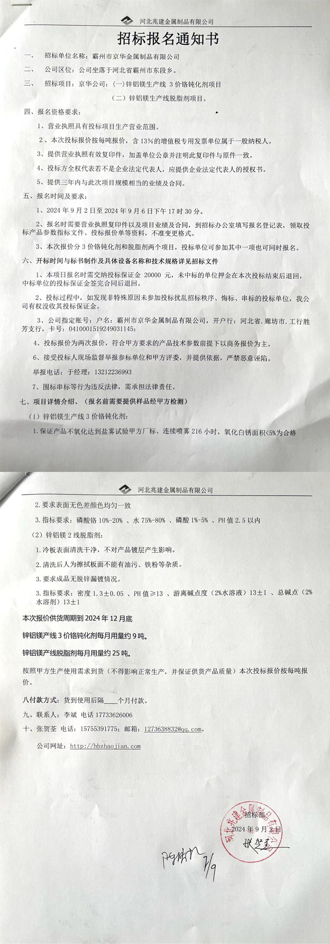 - 招標(biāo)業(yè)主: 河北兆建金屬制品有限公司
