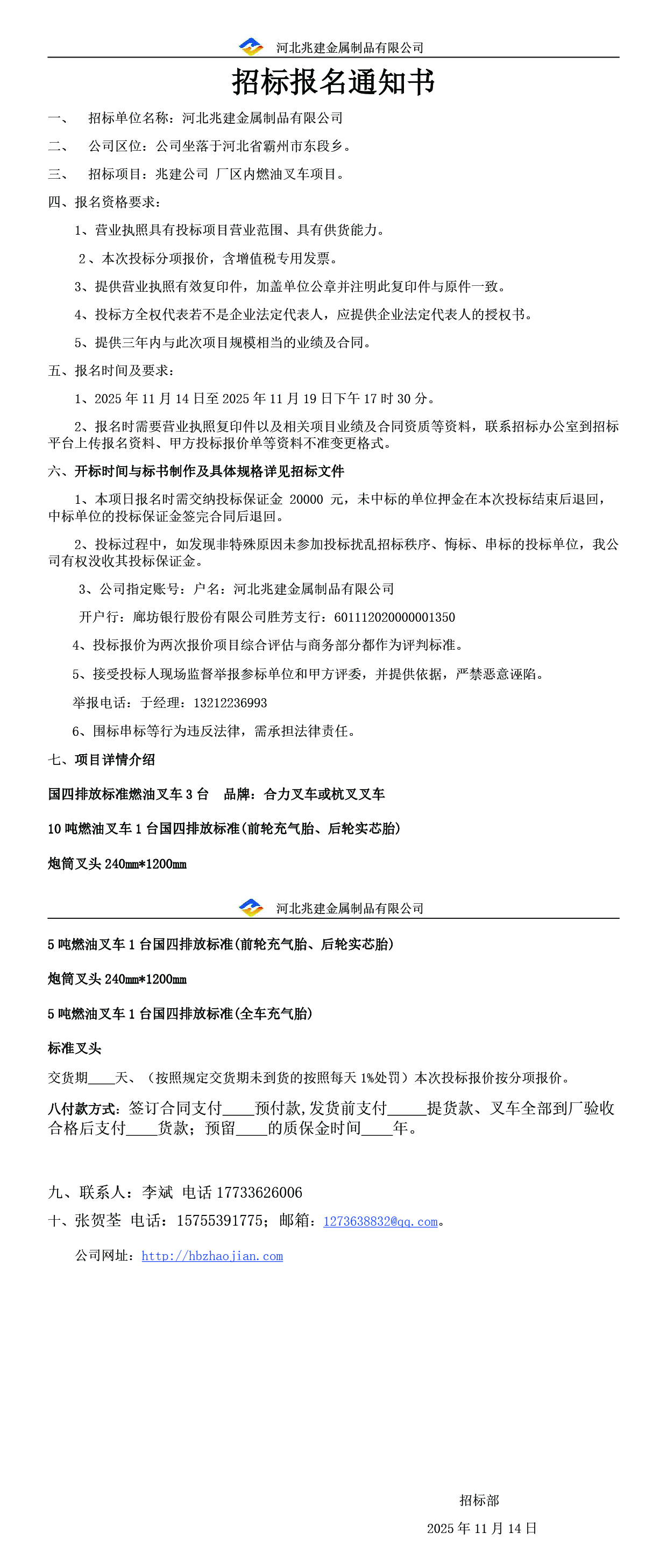 • 招標業主: 河北兆建金屬制品有限公司